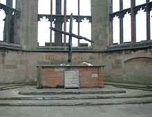 (The photo is of the burnt wooden cross at Coventry Cathedral after it was burned by bombing in WWII)