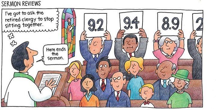But not everyone finds the presence of clergy in the pews a blessing (see cartoon above). I have active colleagues who tell me that some of their retired clergy colleagues can be a burden to them, that they know they will be critical of them and they make them nervous.